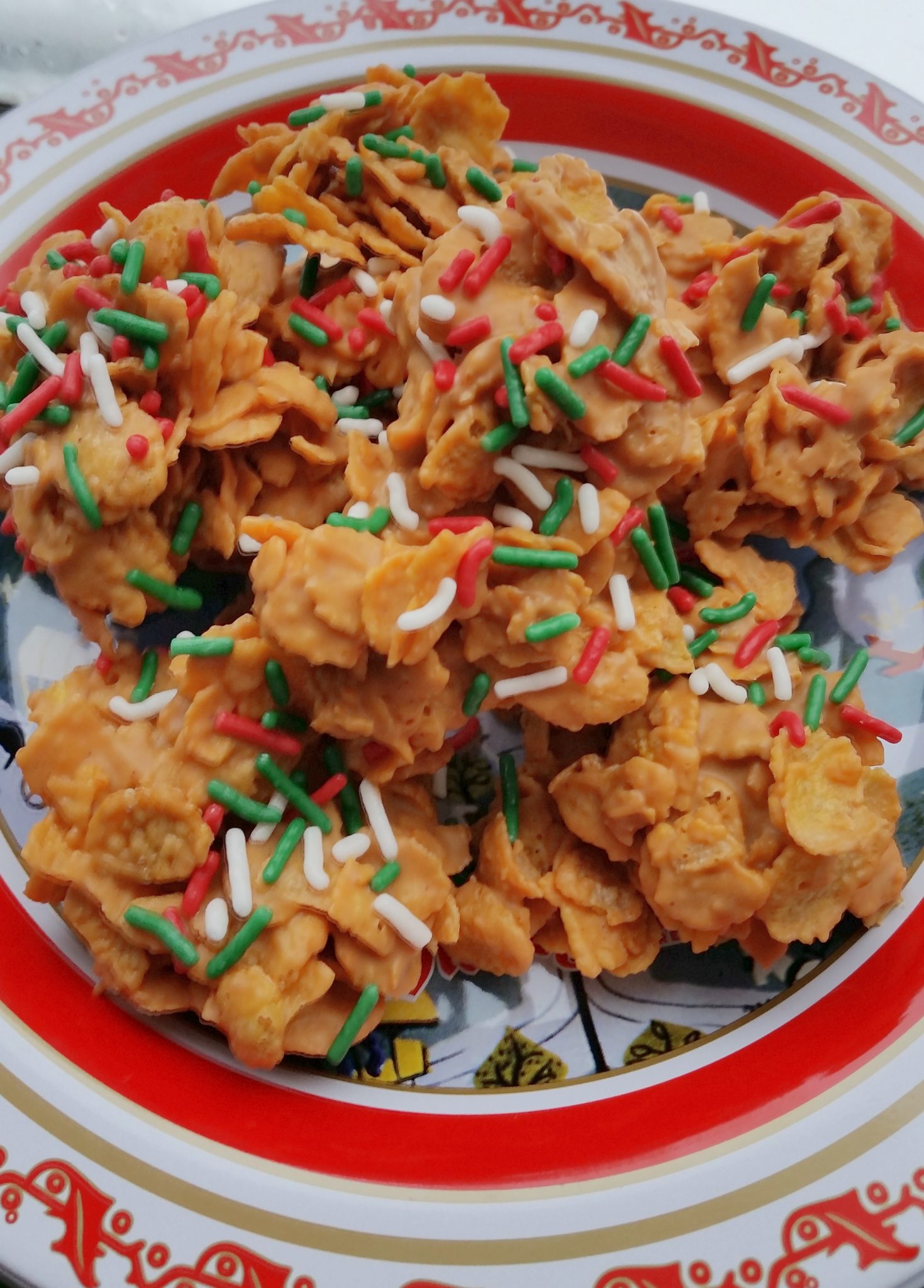 That’s all you need for this rich and tasty no-bake cookie. We like to add sprinkles, since they are a Christmas cookie staple. And I mean staple…My youngest told me recently that we could nix any other cookie from our annual Christmas cookie menu before skipping this treat.